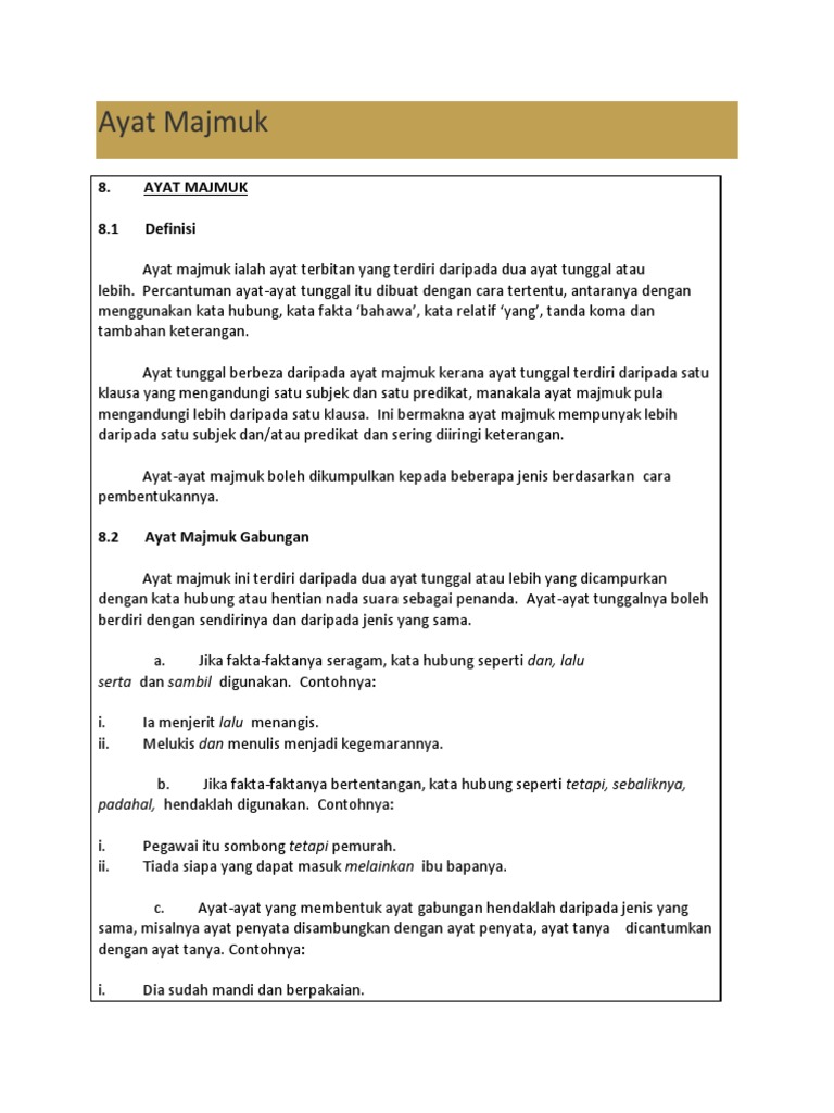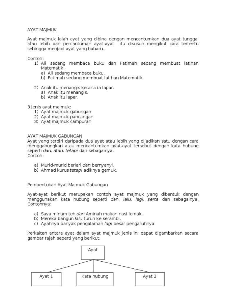 Makna buah hati ialah kekasih yang dicintai bukan buah yang bernama hati. Contoh ayat majmuk kerana dia contoh ayat majmuk kerana terpaksa contoh ayat majmuk keranamu contoh ayat majmuk kerana aku contoh ayat majmuk tahun 3 contoh ayat majmuk dengan kata hubung contoh ayat majmuk berbilang subjek contoh ayat majmuk dan ayat tunggal contoh ayat majmuk gabungan contoh ayat majmuk pancangan relatif contoh ayat majmuk tetapi contoh contoh ayat majmuk contoh. Ayat majmuk dibina dengan mencantumkan dua atau lebih ayat tunggal.