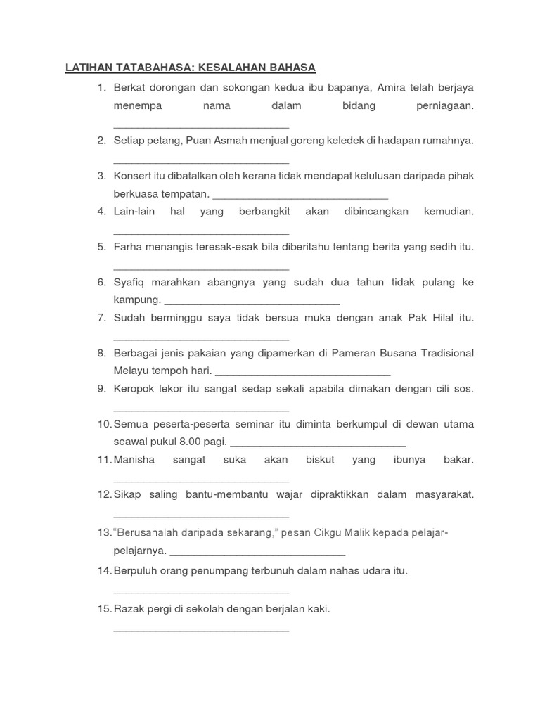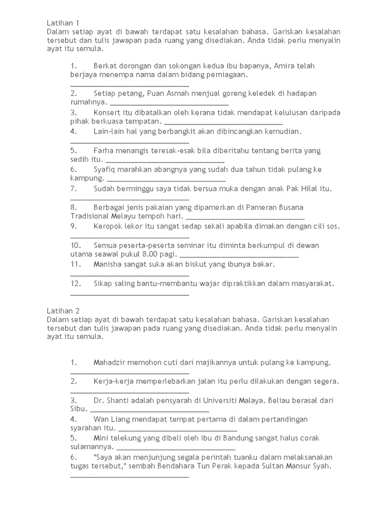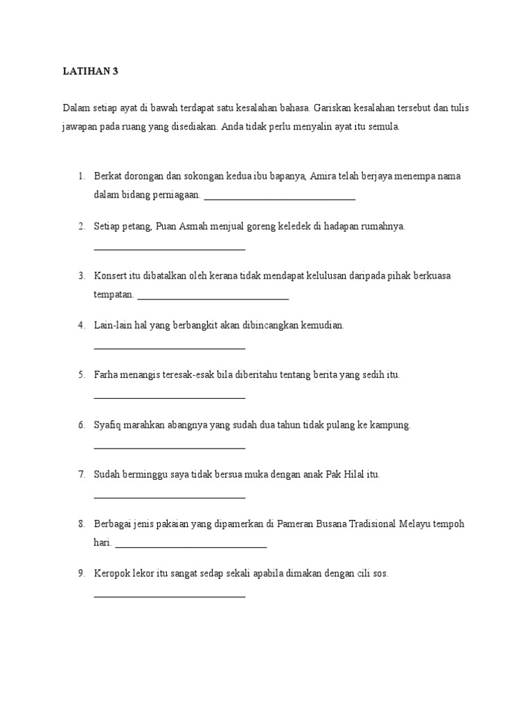 Latihan Tatabahasa Pt3 Senarai Contoh Kesalahan