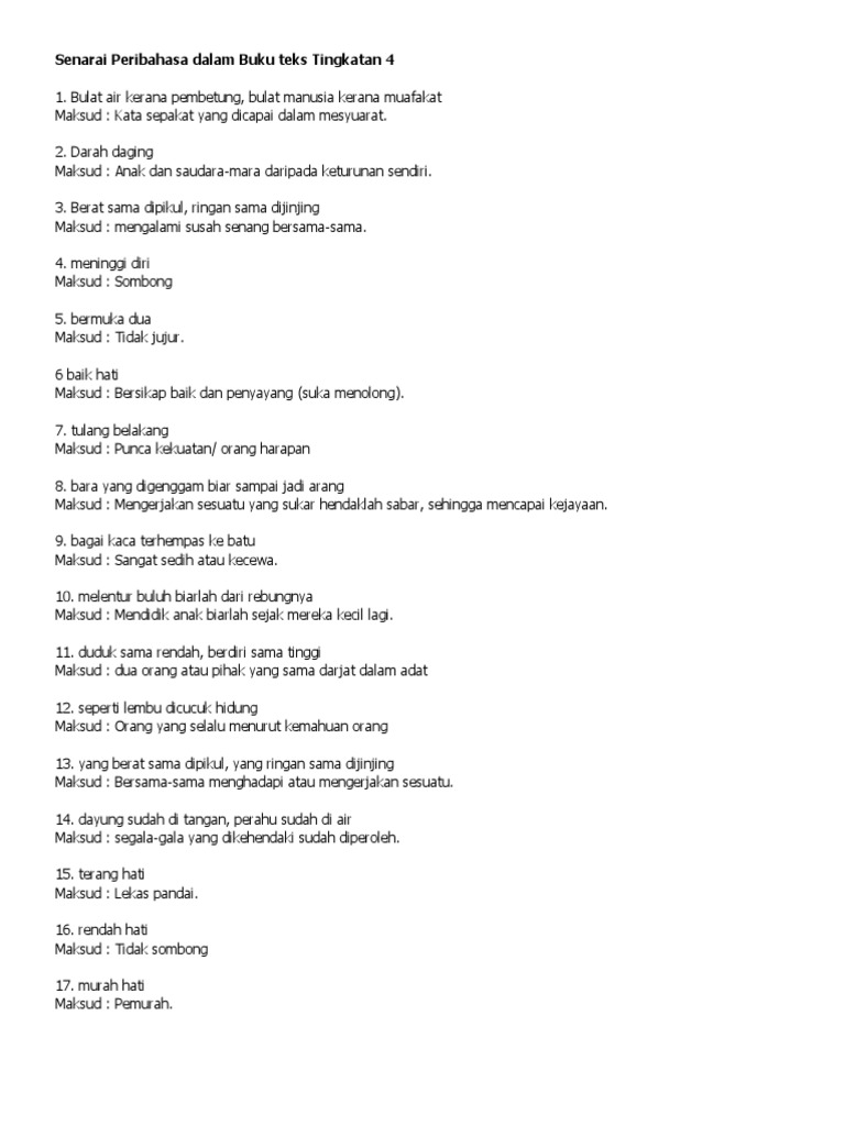 Senarai Peribahasa Dalam Buku Teks Tingkatan 4